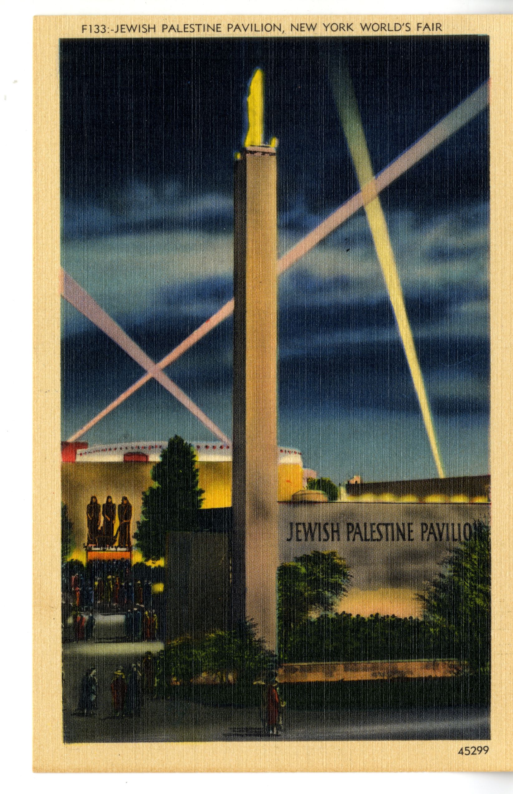 "Jewish Palestine Exhibit Building - New York World's Fair. The Palestine Exhibit at the New York World's Fair is located in the Community Interests Zone. The architects are El-Hanani and Norvin R. Lindheim." Collection of Shulamith Z. Berger